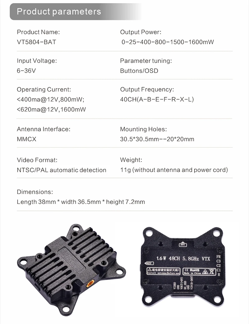 / PandaR VT5804 BAT 1.6W 5.8Ghz VTX